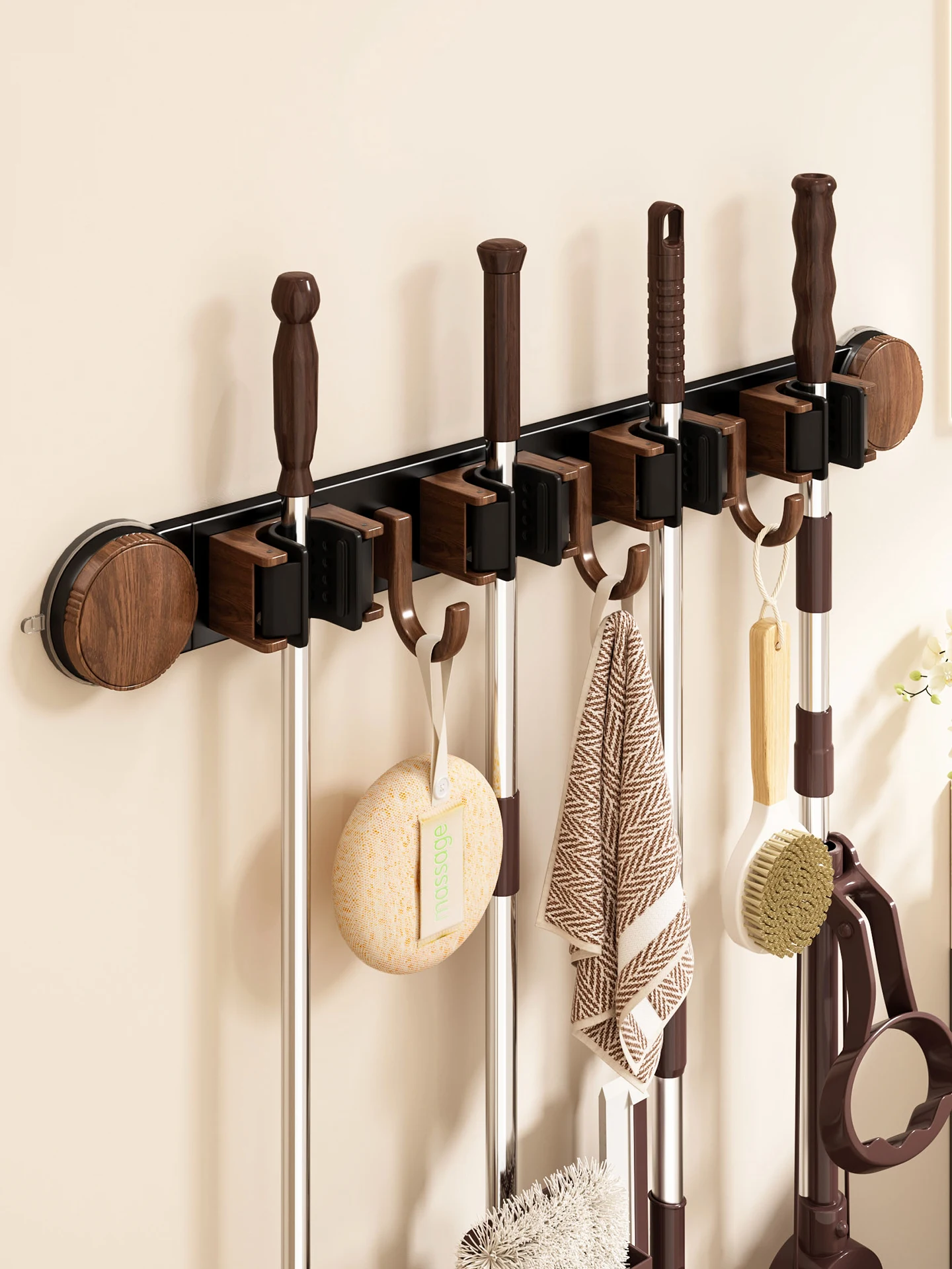 Batoom-soporte de fregona de succión montado en la pared, barredora, pulsera fija, gancho adhesivo de madera Nueg, soporte de barrido sin perforación