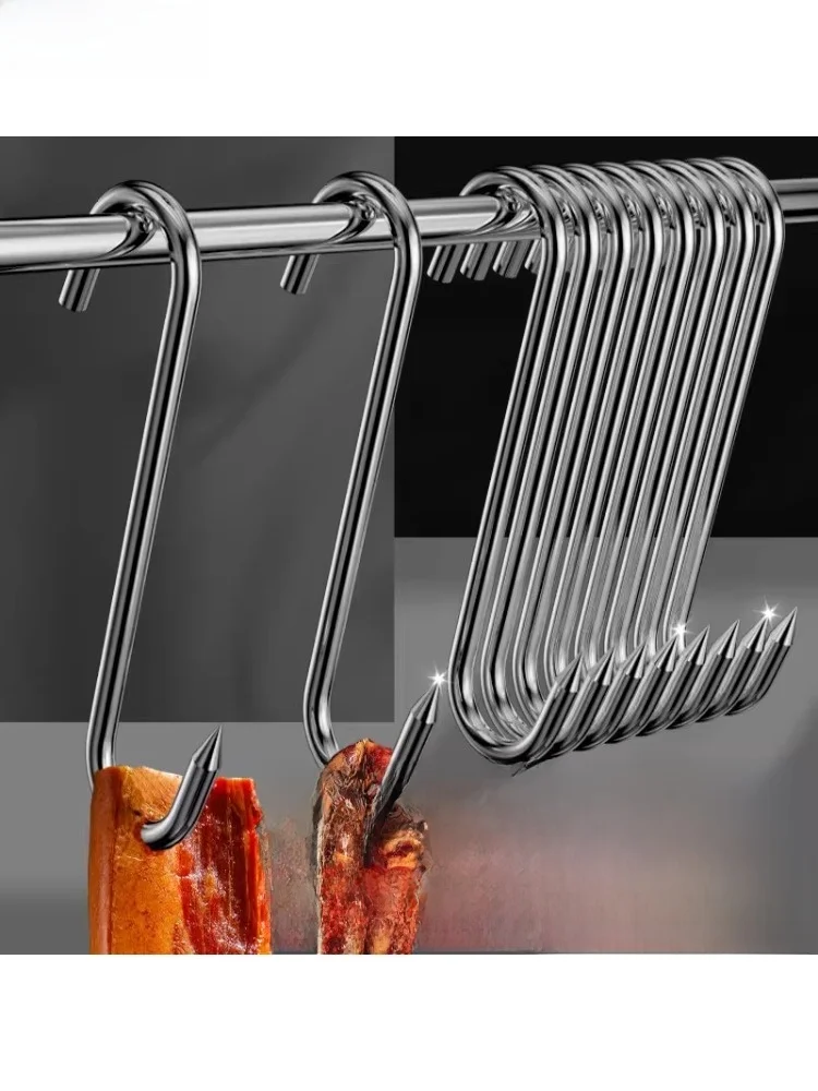 Gancho en Forma de S de Acero Inoxidable para Colgar Salchichas y Carne Seca, Gancho para Barbacoa para Carne Preservada
