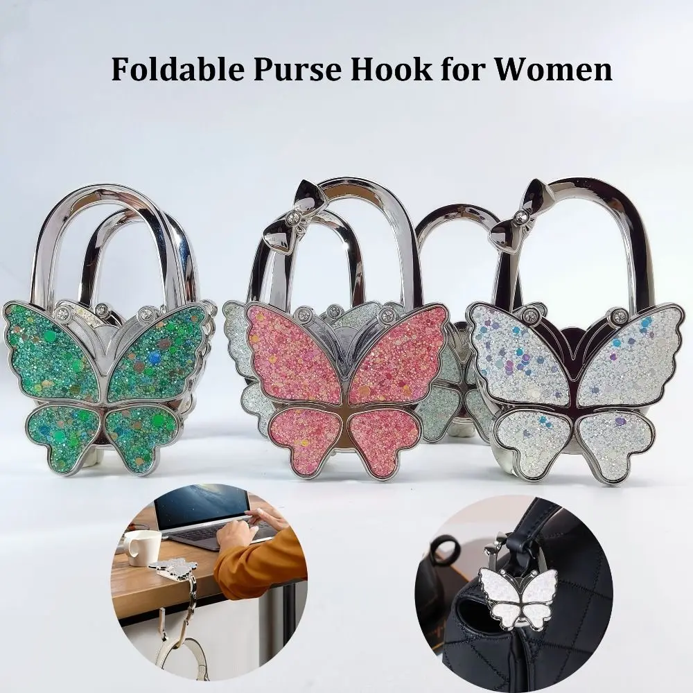 Bonito gancho de bolso de mariposa para mujer, colgador de mesa creativo plegable, colgador de bolso portátil duradero para mesa