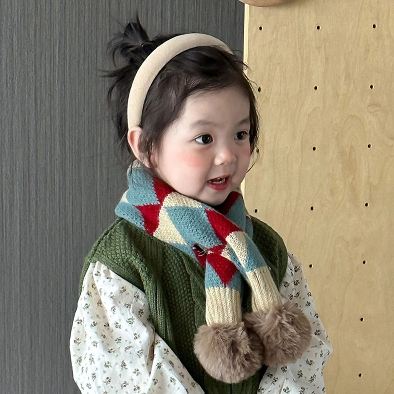 Bufanda a rayas a cuadros para niños, pañuelo cruzado cálido para invierno, antifrío, a prueba de viento, para exteriores, cubierta para el cuello del bebé, bufanda con pompón