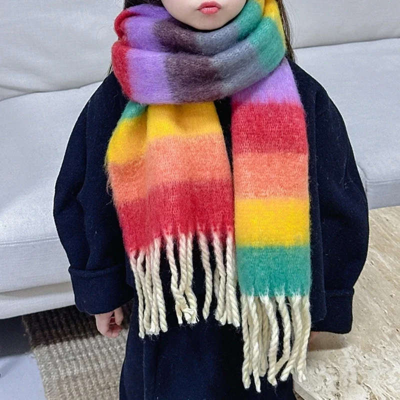 Bufanda con flecos de arcoíris para niños, silenciador largo acogedor a la moda, calentador de cuello de invierno para bebés, ropa para el cuello de diseño Unisex