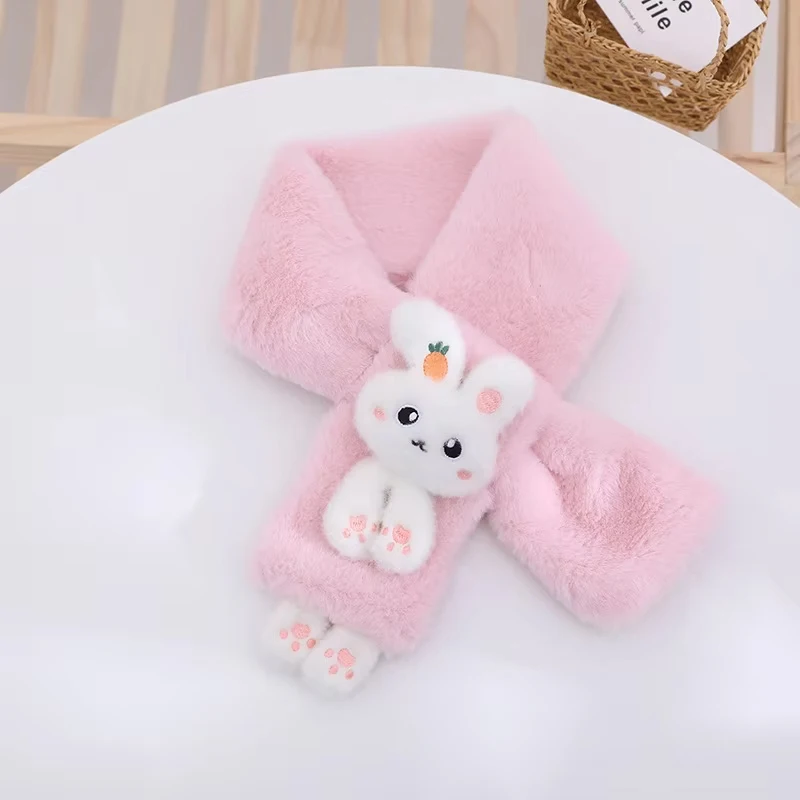 Bufandas de invierno para bebés, niños y niñas, bufanda cruzada de felpa gruesa para niños, babero para bebé, bonito conejo de dibujos animados, protección del cuello de piel sintética, chal cálido