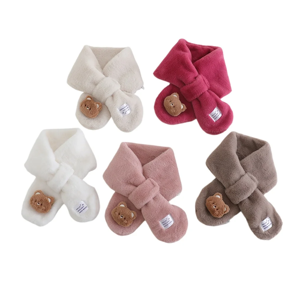 Bufanda de invierno de felpa de oso de dibujos animados de 2 a 5 años para niños y niñas, bufanda cálida para exteriores para bebés, bufanda Unisex con cuello cruzado para niños, silenciadores para niños