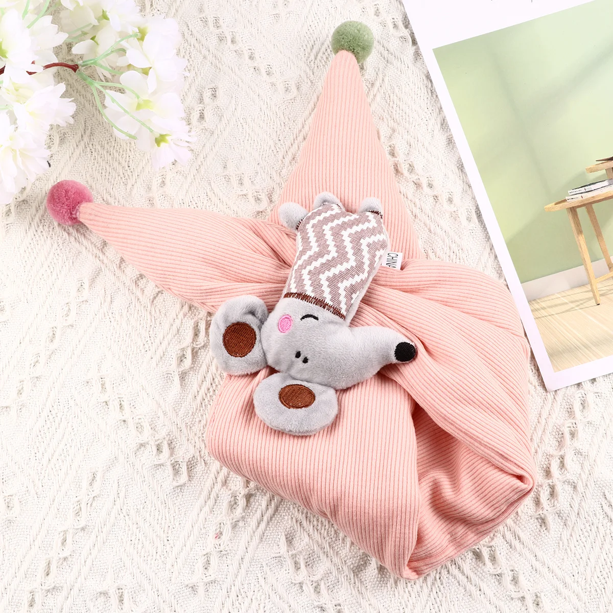 Bufanda rosa pálido con diseño de ratón pequeño de dibujos animados, bufanda cálida de invierno para niños, protección contra el frío, regalo de cumpleaños