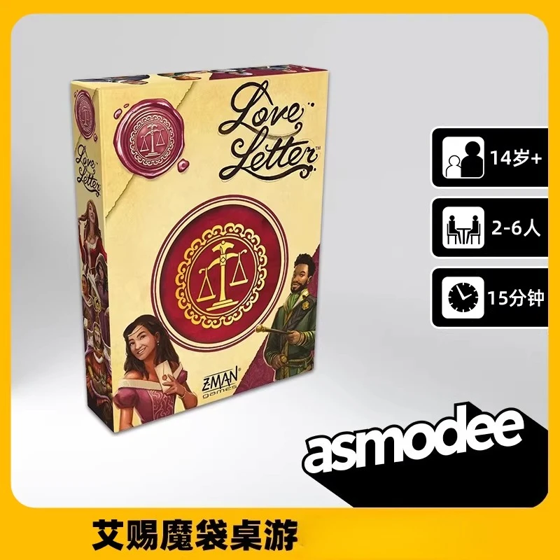 Juego de cartas de viaje portátil Asmodee con 16 personajes, juego de estrategia clásico Asmodee LOVE LETTER, bonito regalo para parejas y amigos