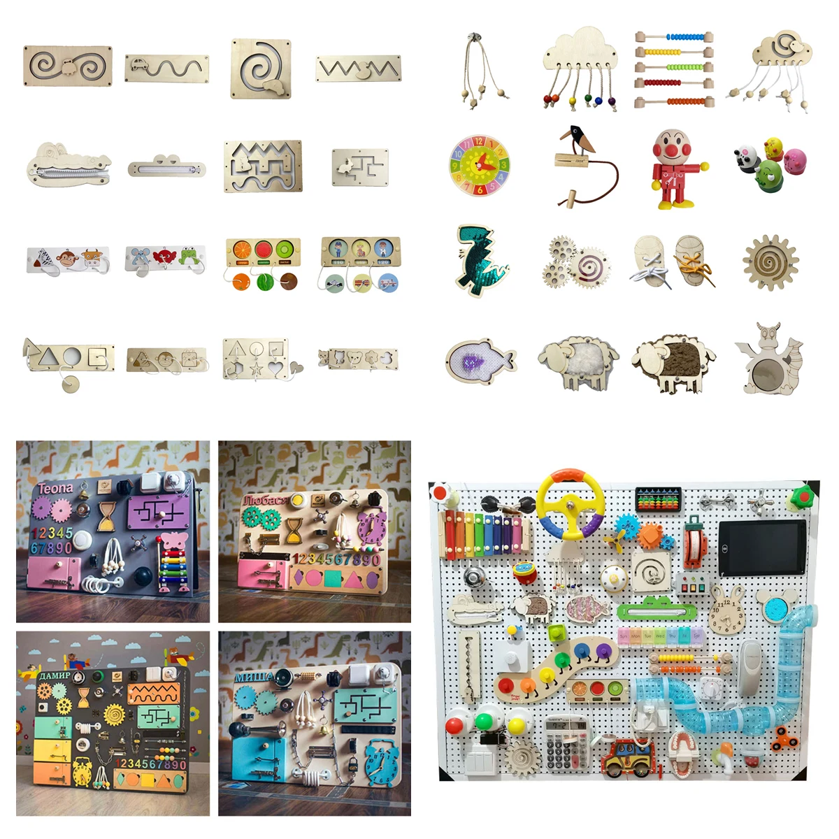 Juguete de madera Montessori para bebé, accesorio de tablero ocupado, engranaje de ballena azul, gráfico de cremallera Animal, emparejamiento, reloj de arena, juguetes educativos para regalos