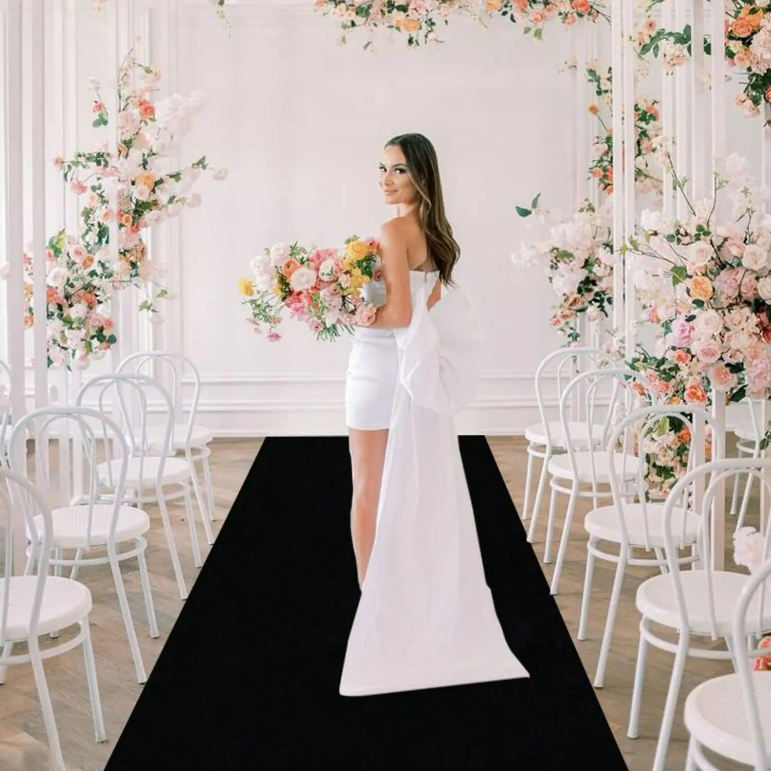 Alfombra de pasillo negra antideslizante, decoración de fiesta de banquete, ceremonia de boda, interior y exterior, alfombra negra de adoración de la iglesia,