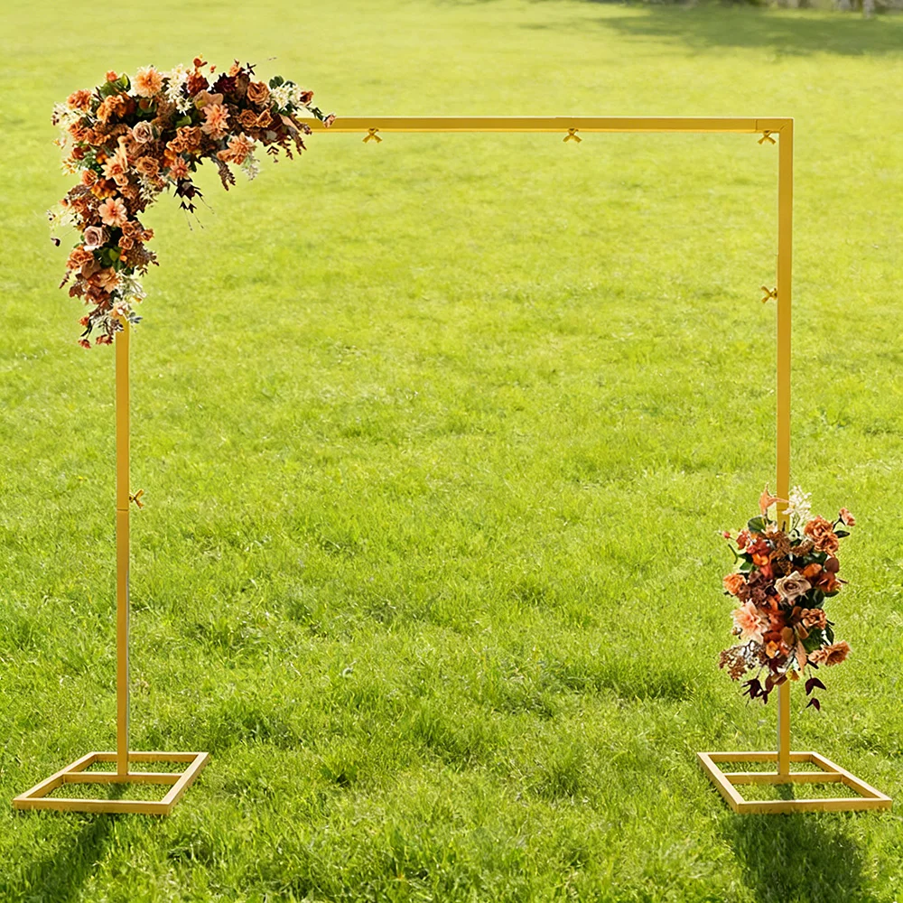 Arco dorado para boda de 3m x 3m con base, soporte para telón de fondo decorado con flores, globos y luces para decoración de fiestas, días festivos y jardines