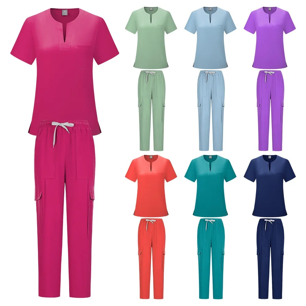 Uniforme de trabajo de médico y enfermera, bata quirúrgica para mujer, pantalones de pierna recta para sala de trabajo, conjunto de Color sólido