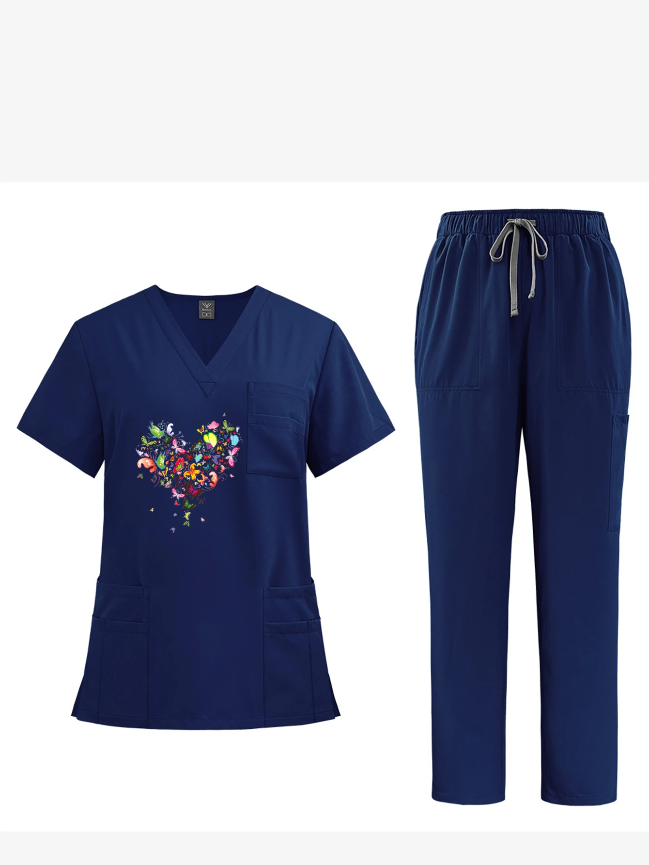 Conjunto de ropa de descanso con estampado personalizado/DIY/exclusivo para exteriores, Unisex, con cuello en V, pasillos de parque, farmacia, correciones postoperales, belleza