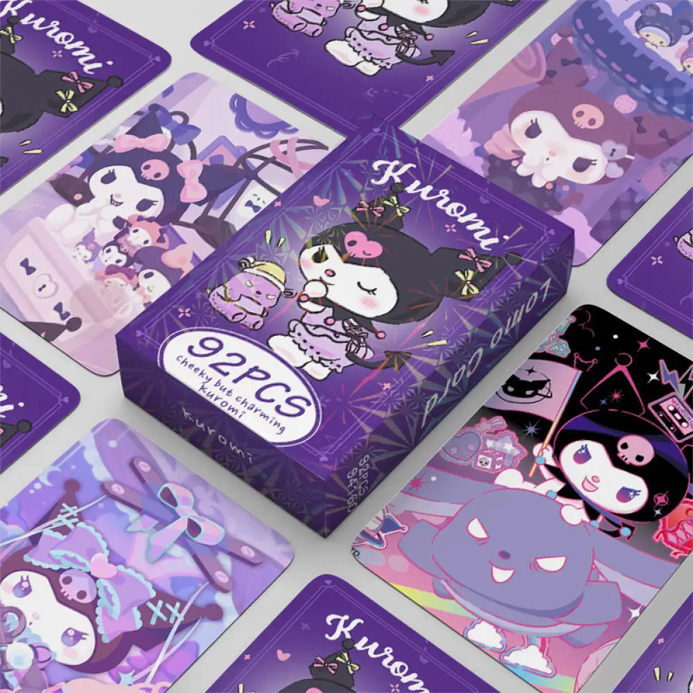 92 Uds. Tarjetas Sanrio Kuromi, tarjeta coleccionable Kawaii Kuromi, tarjeta coleccionable de alta definición, tarjeta de regalo, tarjeta LOMO de doble cara