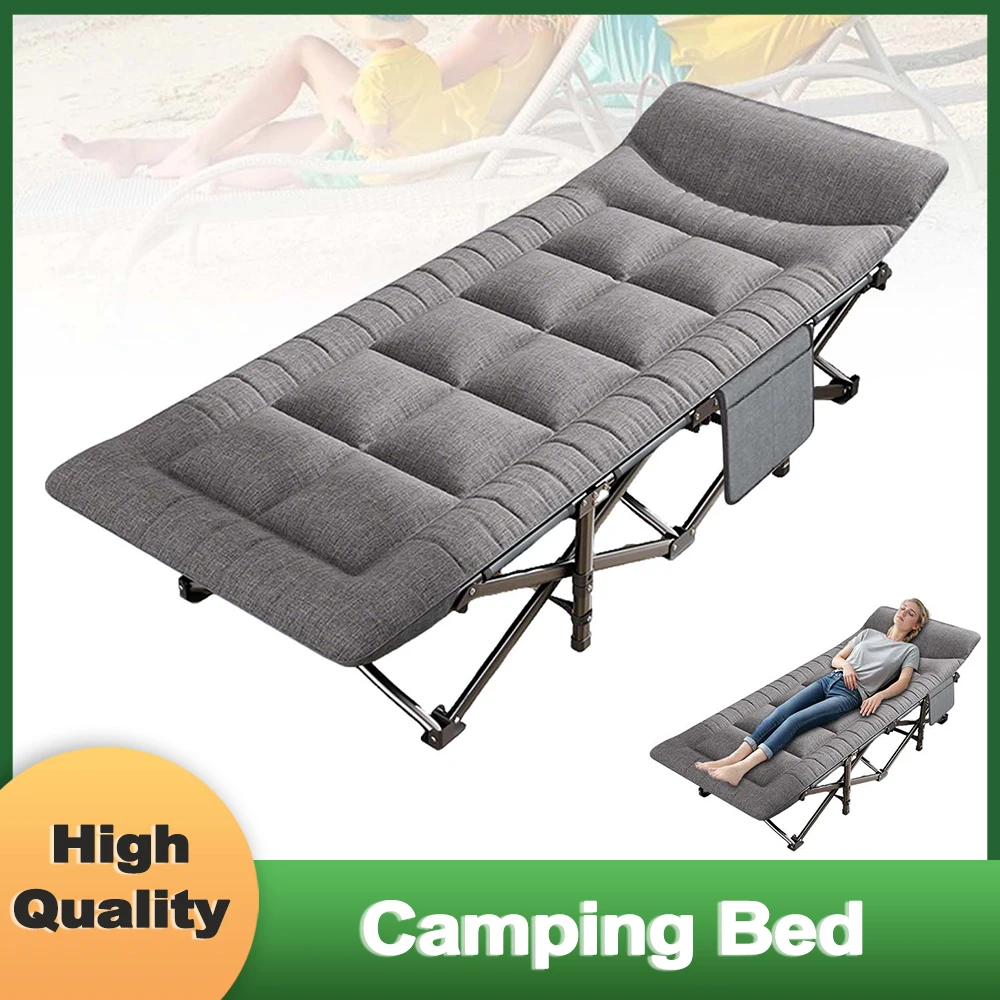 Cama plegable para acampar con bolsillo lateral, diseño integrado, cuna portátil de hasta 200 kg, fácil de instalar, para interiores, exteriores, playa, jardín, viajes