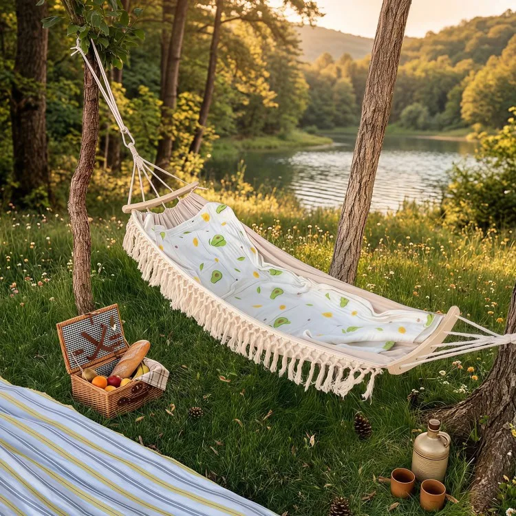 Silla Colgante con Borlas para Exteriores, Picnic, Viajes de Primavera, Anti-Vuelco, Camping, Ocio, Accesorio para Fotos, Sensor de Ambiente, Fotografía
