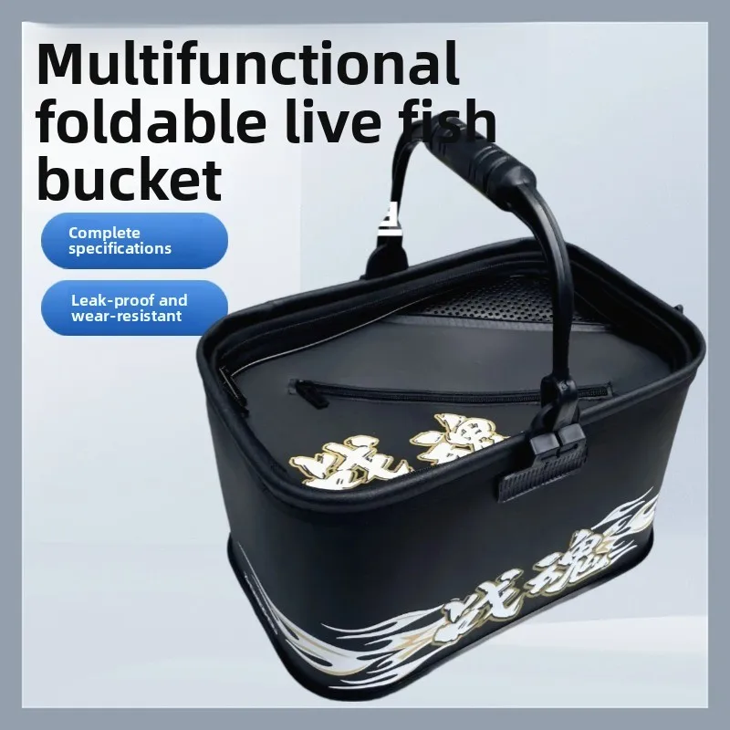Cubo de pesca multifuncional, cubo para cebo, cubo para peces vivos, material EVA plegable, portátil y grueso, almacenamiento de aparejos de pesca