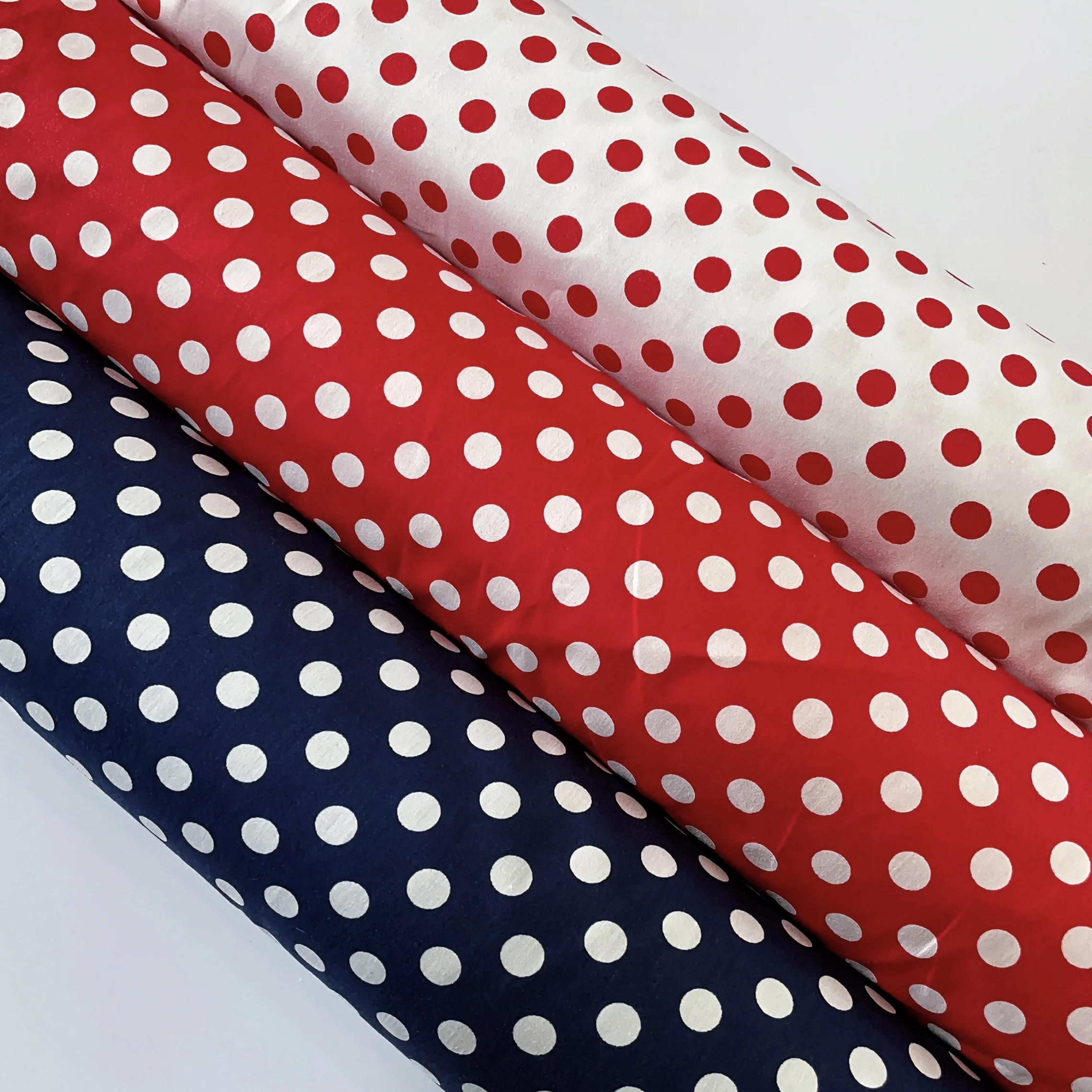 Tela de Algodón Suave con Diseño Clásico de Puntos, Color Azul Marino, Rojo y Blanco, Ligera, para Vestidos de Verano, Blusas, Manualidades y Decoración del Hogar