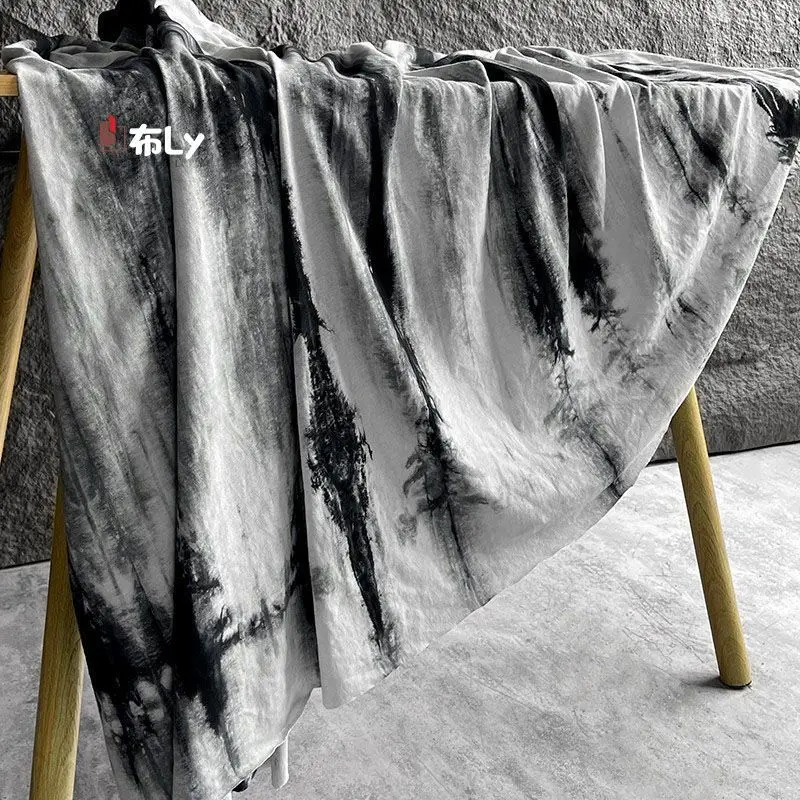 Tela de Lino y Algodón con Estampado Tie-Dye de White River Ink para Diseñadores, Material de Lujo para Abrigos Hanfu y Telones de Fondo