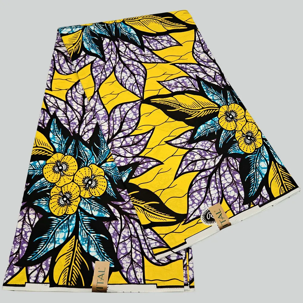 Tela africana con estampado de cera – Ankara 100% algodón con brillo dorado, 6 yardas/rollo, para vestidos, pañuelos para la cabeza y prendas de moda