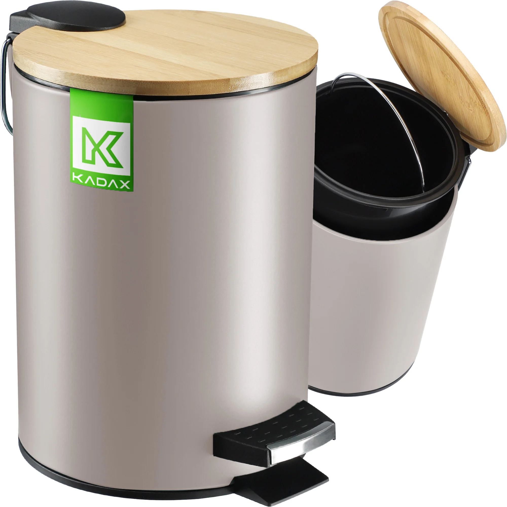 KADAX baño cubo de basura 3L baño bambú pequeña granada de metal con pedal