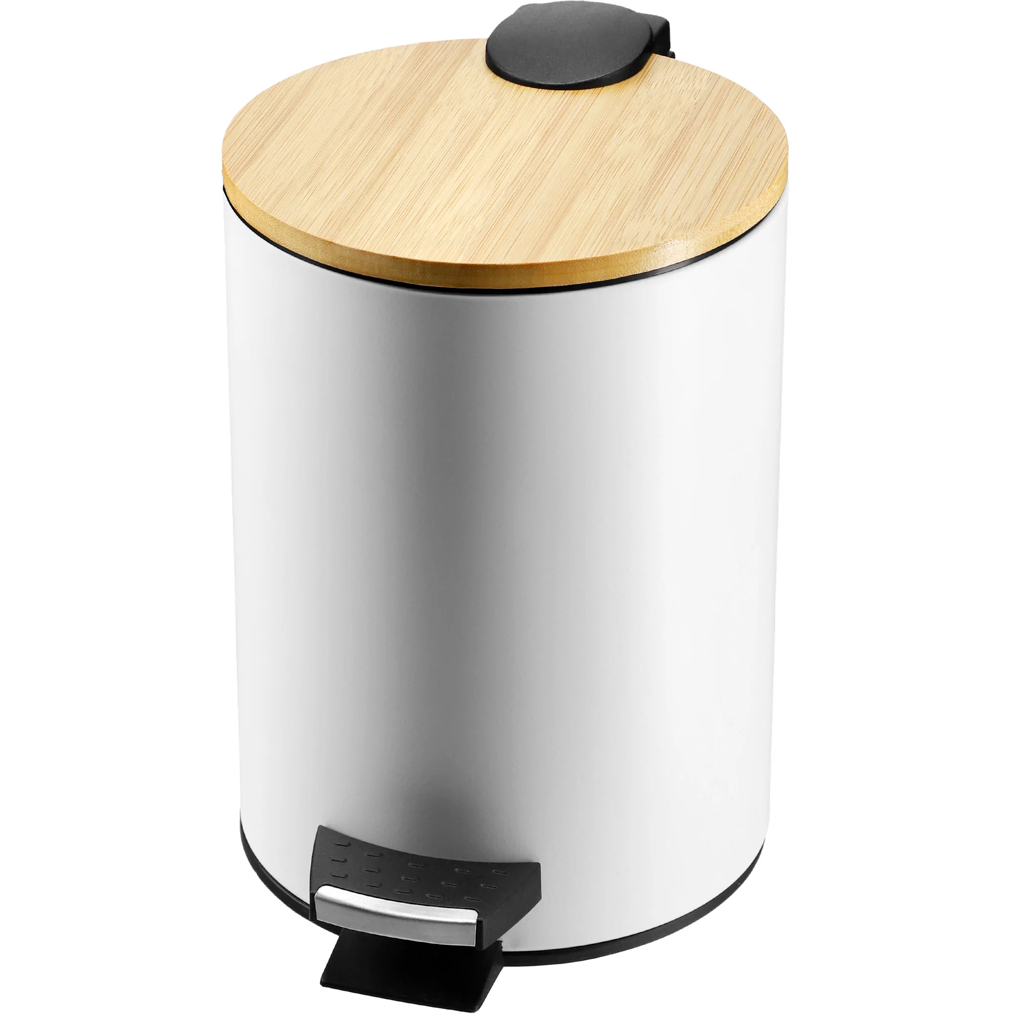 KADAX Cesta de basura para baño, residuos de 3L para baño con pedal, estera blanca de bambú