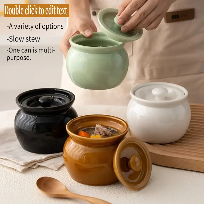 Olla para estofado de cerámica de gran capacidad de 400ml de espesor para el hogar, olla para estofado con tapa, vaporera de cerámica resistente al calor, alta calidad, 1 ud./4 Uds.