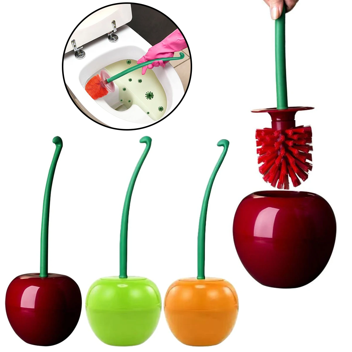 Juego de escobilla de baño en forma de cereza de 3 colores: limpiador independiente de mango largo con soporte para baño | Lindo y funcional