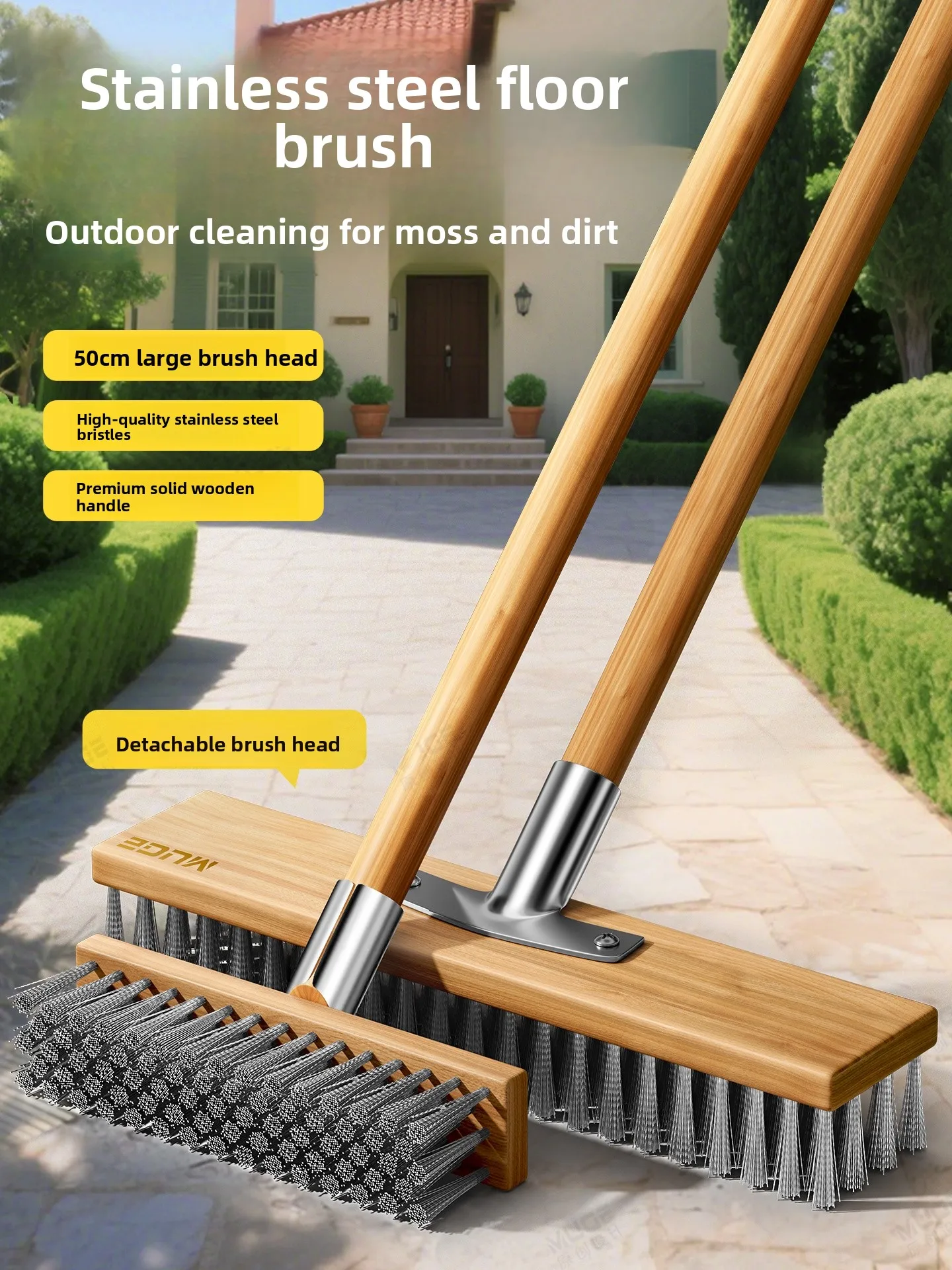 Cepillo de alambre de o inoxidable para limpieza de azulejos de baño y patio, cepillo de suelo de cerdas duras con mango ...