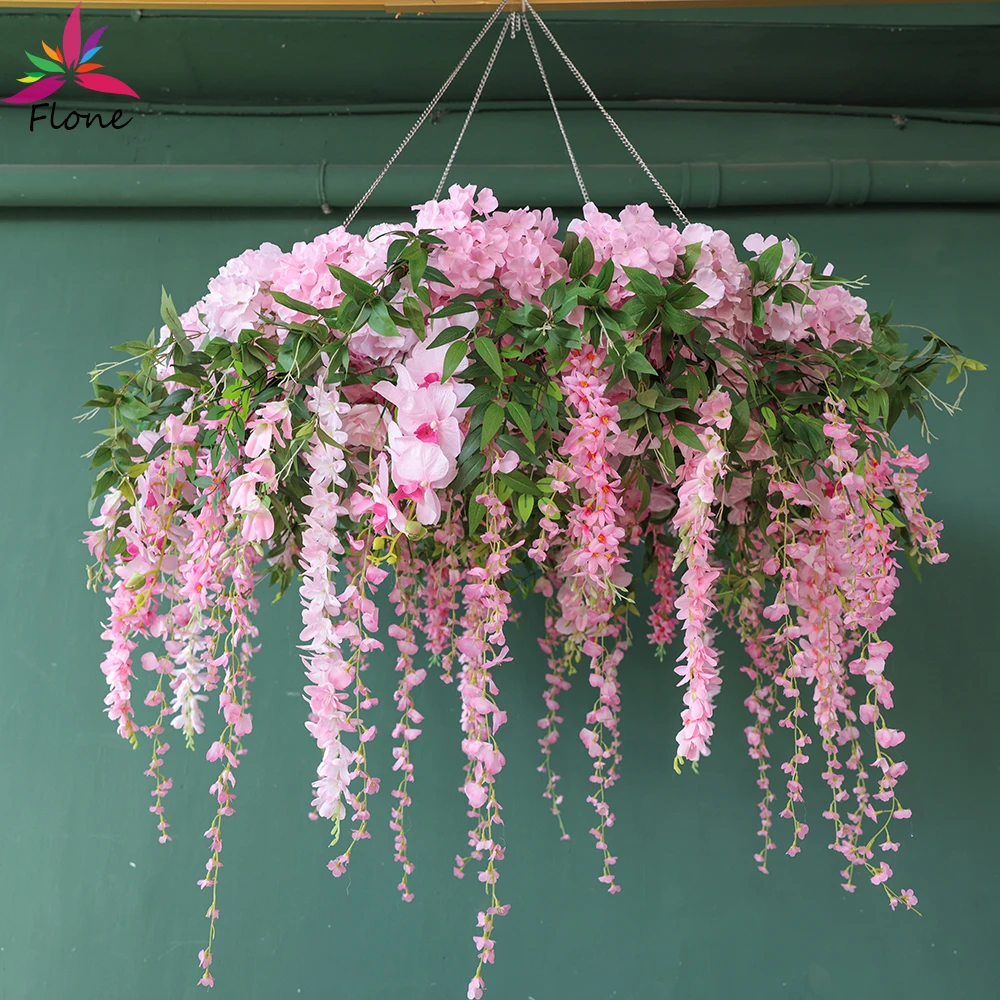 Flor circular de techo W120cm, arreglos florales falsos Premium para escena de boda, decoración del techo de la habitación y guirnalda de configuración de fiesta FL2611