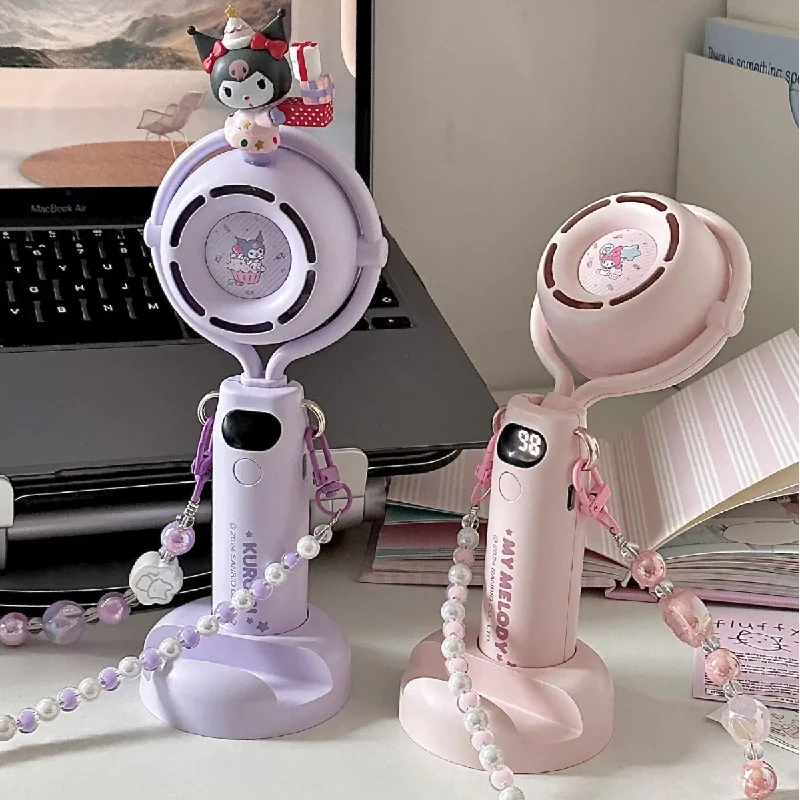 Sanrio-ventilador pequeño plegable de mano My Melody, miniventilador portátil de carga silencioso para niños, bonito ventilador de dibujos animados Kuromi