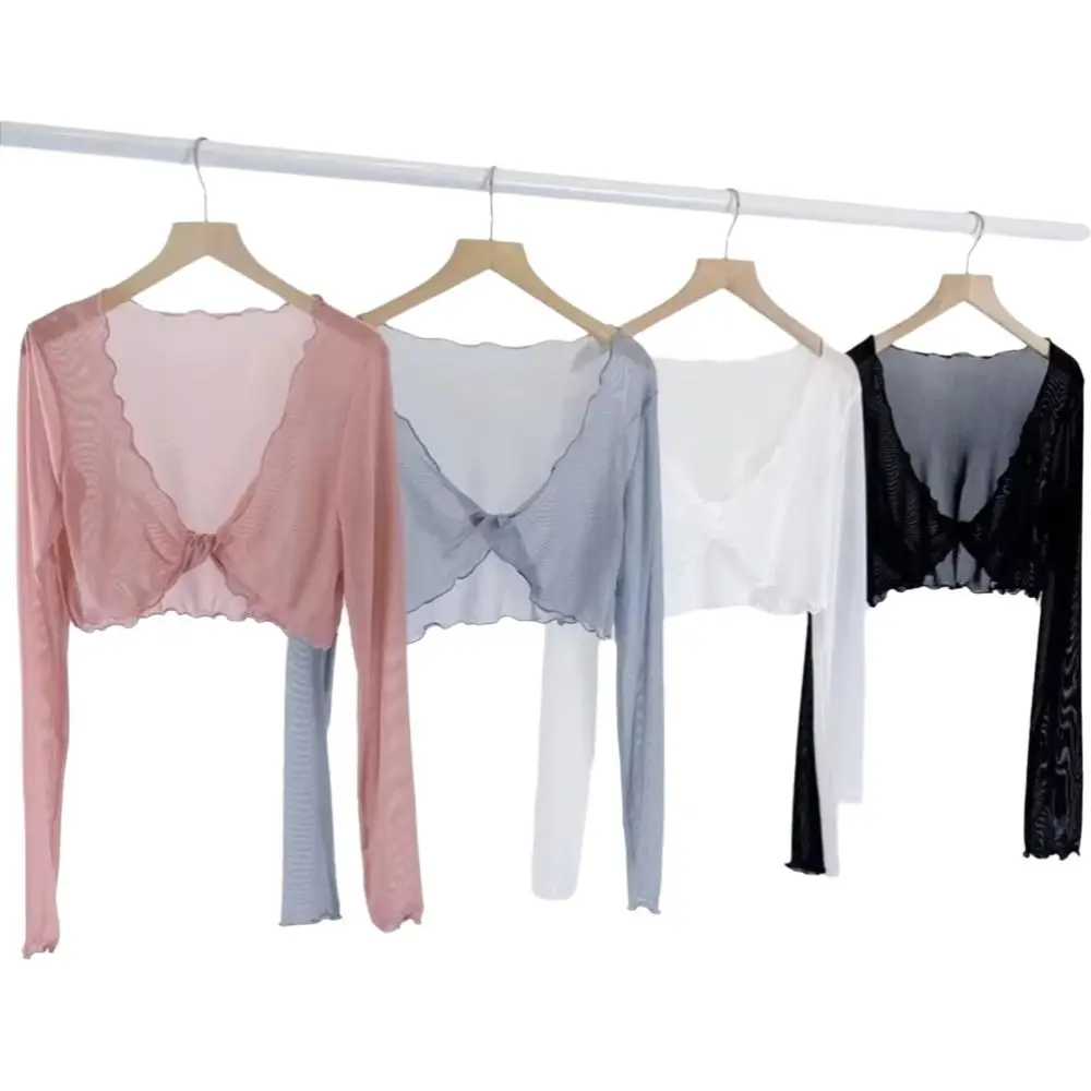 Tops de Danza Semitransparentes de Manga Larga, Ligeros y Finos, con Borde con Volantes, Cárdigan de Ballet, Cárdigan para Yoga y Actuaciones en Escenario para Mujer