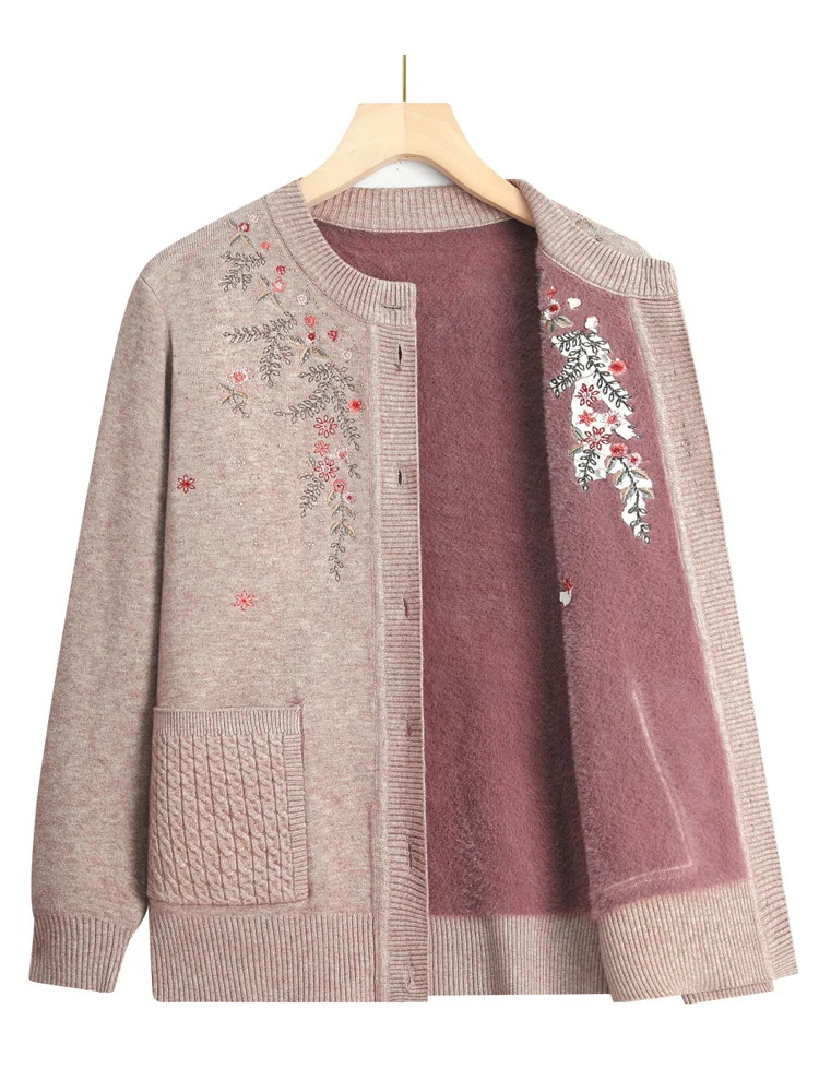 Suéter Cárdigan de Otoño para Abuela, Tejido Grueso de Lana, Ropa de Punto para Mujer de Mediana Edad y Mayores, Abrigo de Es...