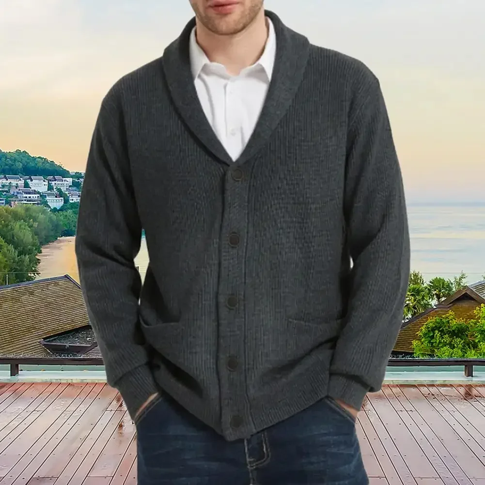 Prendas de abrigo versátiles para hombre, cárdigan elegante con cuello tipo chal de mezcla de lana para hombre, suéter con bolsillos, chaqueta de invierno de punto suave para el trabajo
