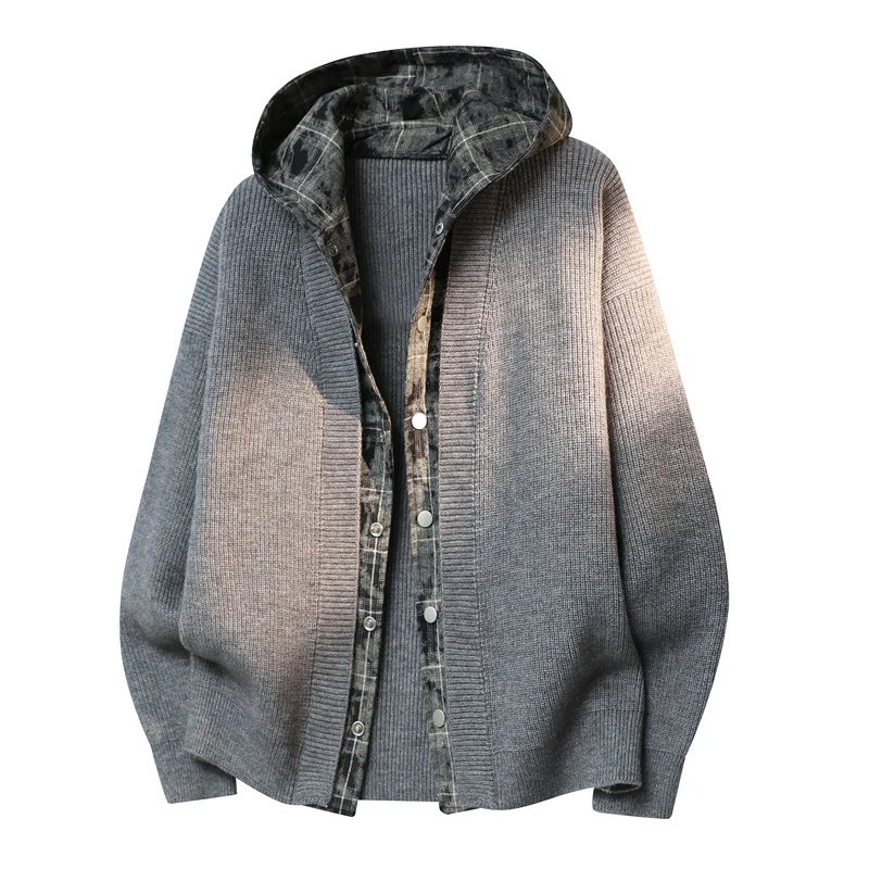 Suéter de dos piezas falso de punto de primavera de marca para hombre, abrigo holgado de manga larga con capucha, jersey de ocio, ropa cómoda para hombre, Tops