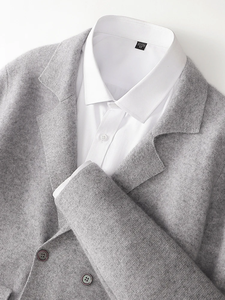Cárdigan con solapa con muescas para hombre, suéter tejido de lana merina 100%, suéter informal inteligente de alta calidad para otoño e invierno, abrigo grueso, camiseta nueva