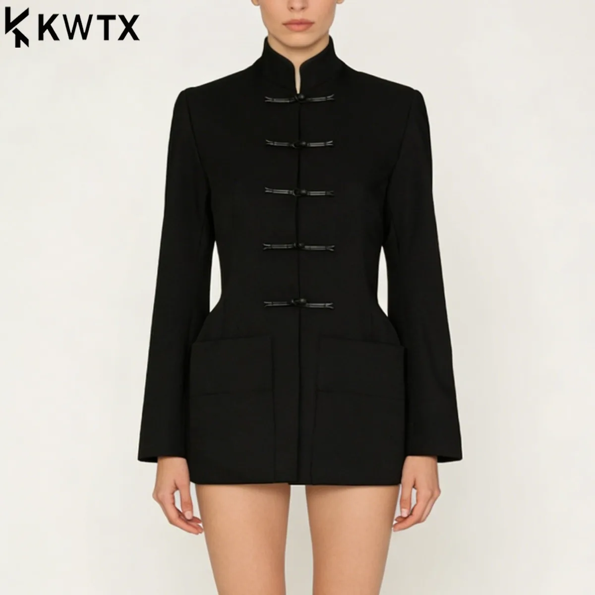 Chaqueta de traje con un solo botón y cuello en V profundo para mujer, prendas de vestir de manga corta, elegante, elegante, otoño, nueva, moda