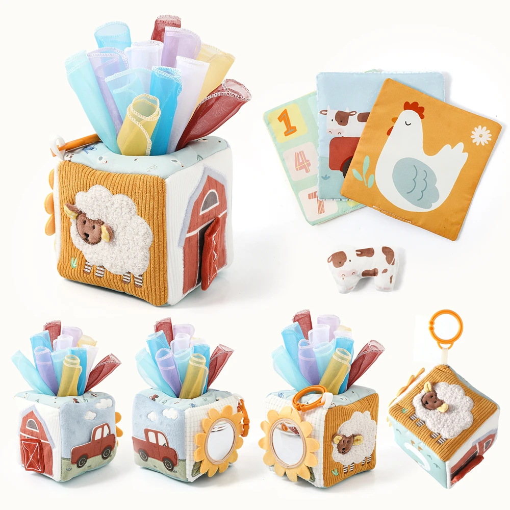Nuevos libros de tela para bebés, entrenamiento Visual y auditivo, juguetes educativos para edades tempranas, libro de colas de animales de dibujos animados para niños pequeños de 12 a 72 meses