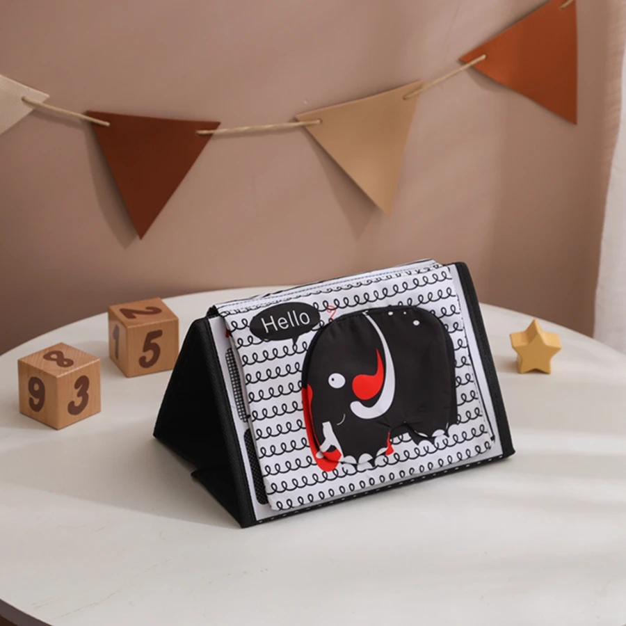 Libro de tela para ropa de cama de bebé, juguete infantil sensorial de alto contraste, libro de actividades plegable suave, promueve el desarrollo visual del bebé