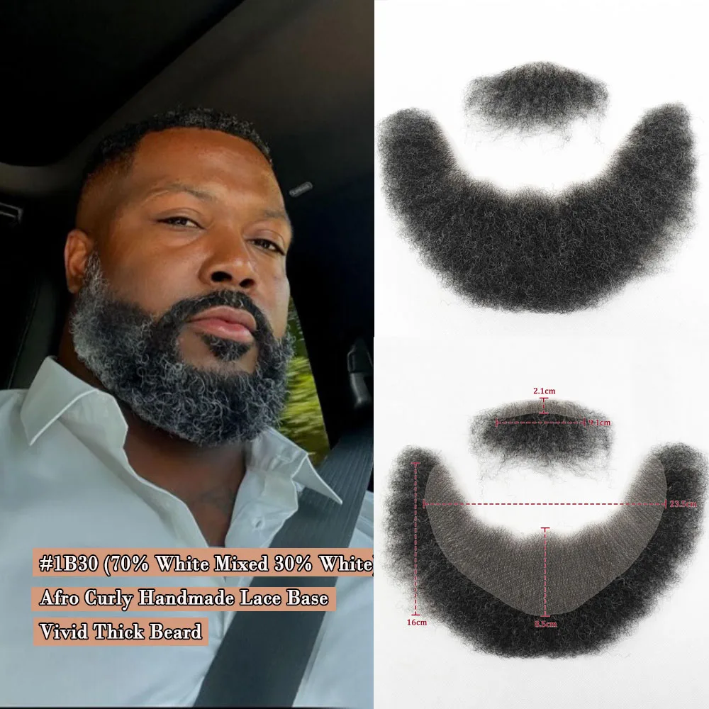 Gris # Bigote y Barba Facial Afro Rizada Realista 1B40 o Negra para Hombres Afroamericanos, Maquillaje, Base de Encaje, Sistema de Reemplazo