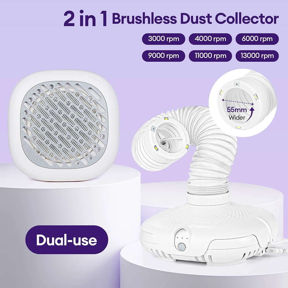 Colector de polvo de uñas de doble uso, Extractor de polvo de uñas sin escobillas, potente aspiradora para manicura con tubo LED, 130W