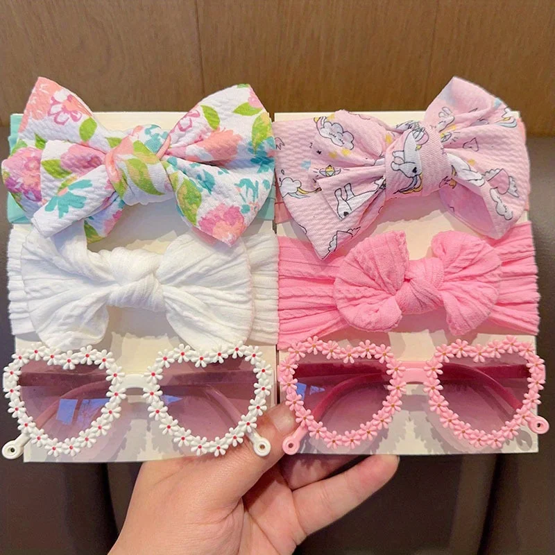 3/6 unids/set nuevo Color sólido Bowknot 2 estilos patrón diadema flor corazón gafas accesorios para el cabello conjunto
