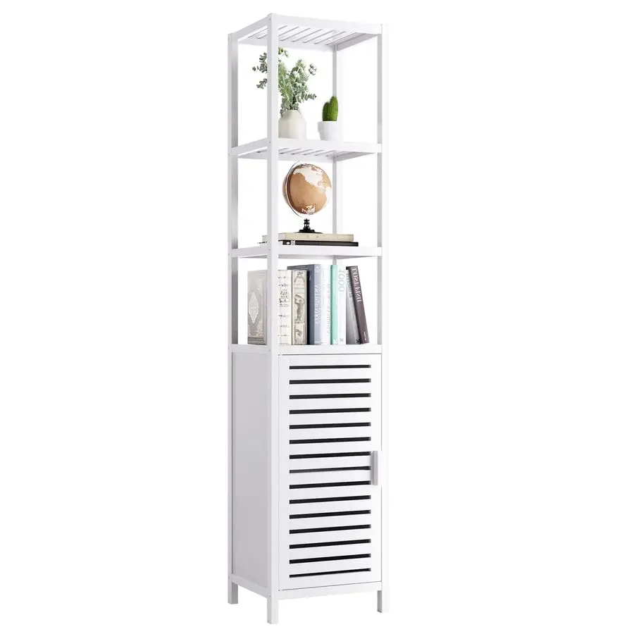 Gabinete de Baño Blanco de Bambú, Gabinete de Baño que Ahorra Espacio con Estantes Ajustables para Espacios Pequeños