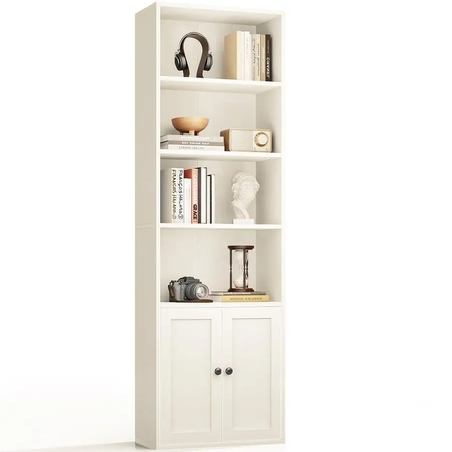 Librería con 6 Estantes, Puertas y Gabinete de Almacenamiento, Estante de Exhibición y Almacenamiento que Ahorra Espacio, Librería para el Hogar, Oficina, Sala de Estar