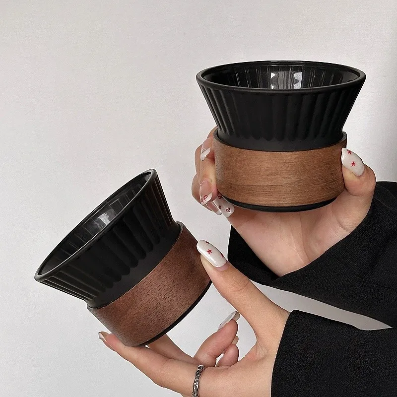 Taza de madera para café, té, cerveza, jugo, leche, agua, café, cerveza, taza con mango de madera, accesorios Retro para oficina y cocina
