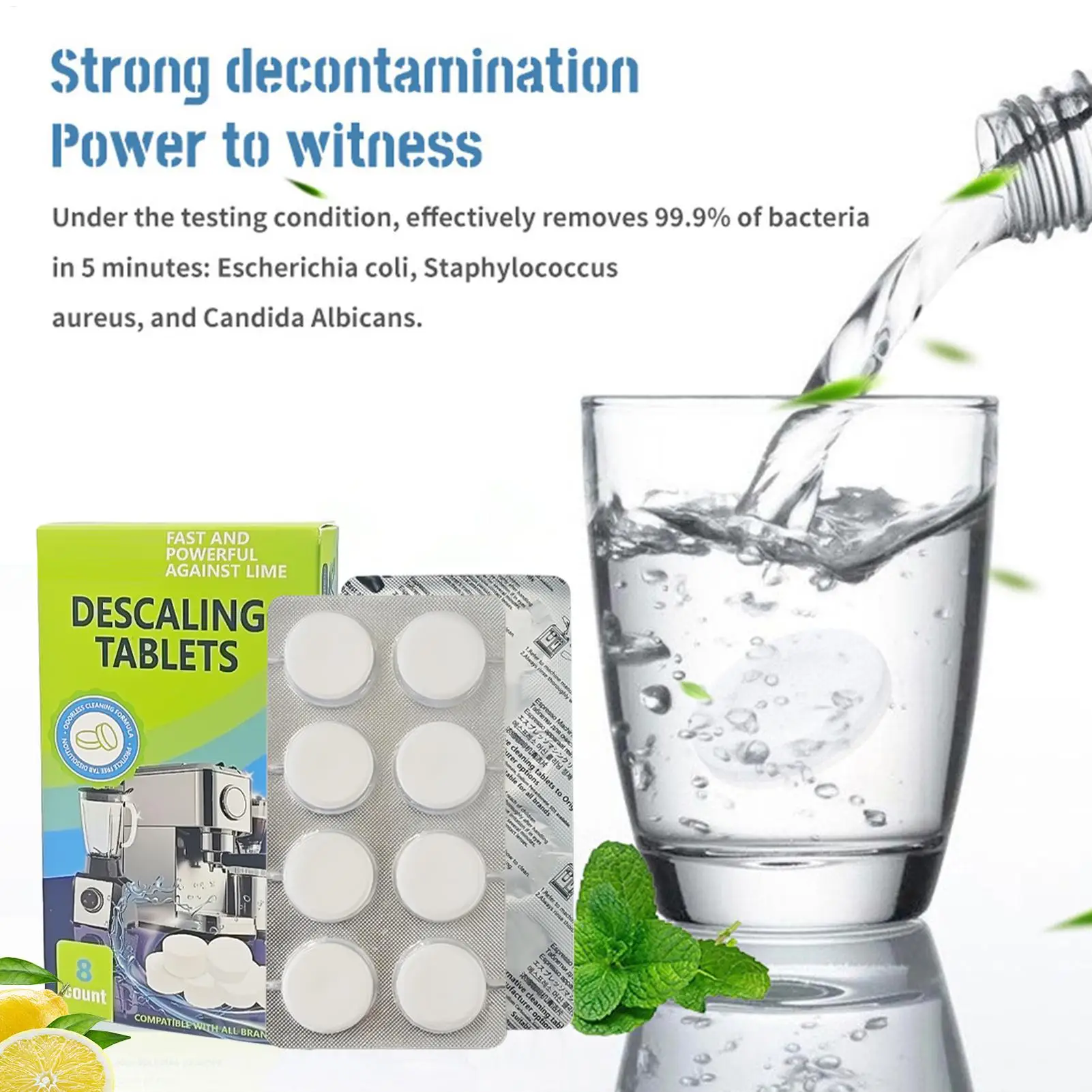 Desincrustante para Hervidor, Tabletas Desincrustantes para Hervidor, 8 Unidades, Limpiador de Cafeteras para Utensilios de Cocina de Acero Inoxidable, Cabezal de Ducha, Inodoro