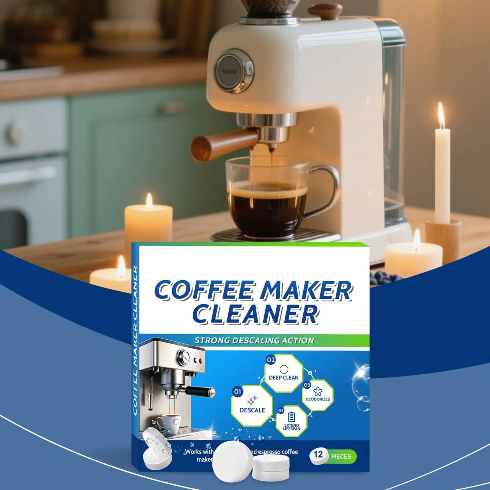 Tabletas de limpieza para máquina de café, paquete de tabletas limpiadoras para máquina de café, solución de limpieza descalcificadora, potente mejora de sabor para