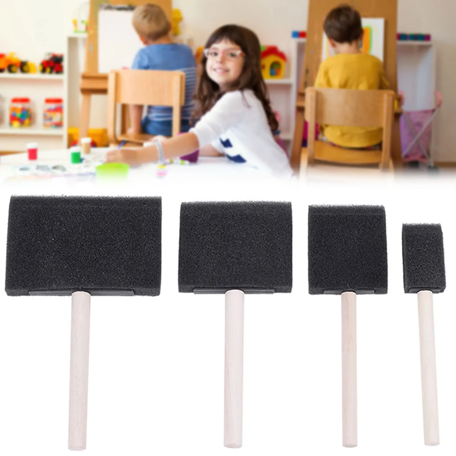 4pcs Cepillo de espuma de espuma Juego de espuma multifuncional Cepillo de esponja de pintura con mango de madera fácil de limpiar para graffidades de pintura