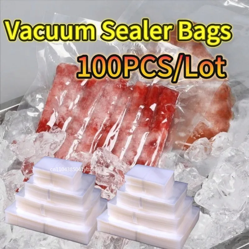 100 unids/lote bolsas de vacío de cocina para sellador al vacío de alimentos máquina de embalaje bolsa de almacenamiento de alimentos accesorios de cocina sin BPA