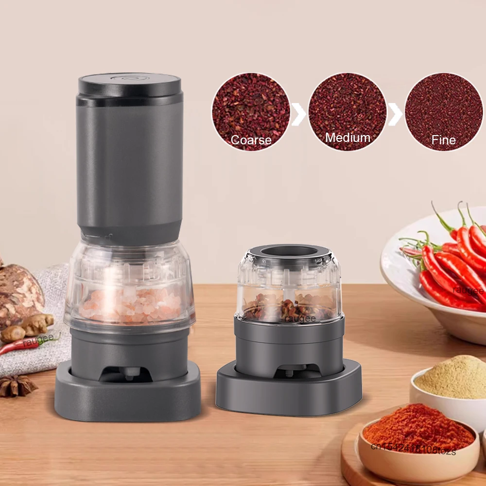 Molinillo de pimienta eléctrico, molinillo de especias automático recargable para cocina, barbacoa, aspereza ajustable, molino de pimienta y sal marina