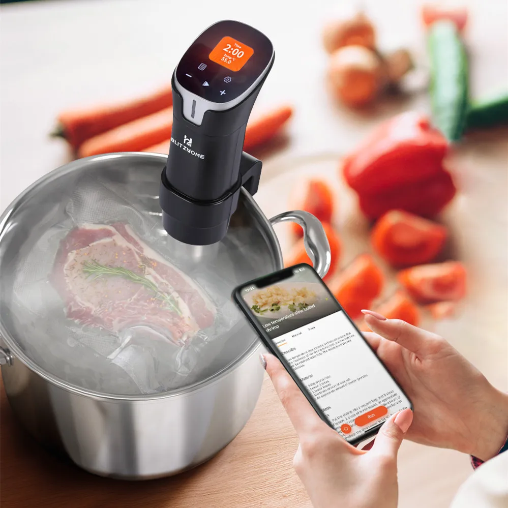 Olla de Cocción al Vacío Inteligente BlitzHome SV2401C de 1100W con Control por Aplicación, Circulador Térmico de Inmersión para el Hogar con Pantalla Táctil a Color