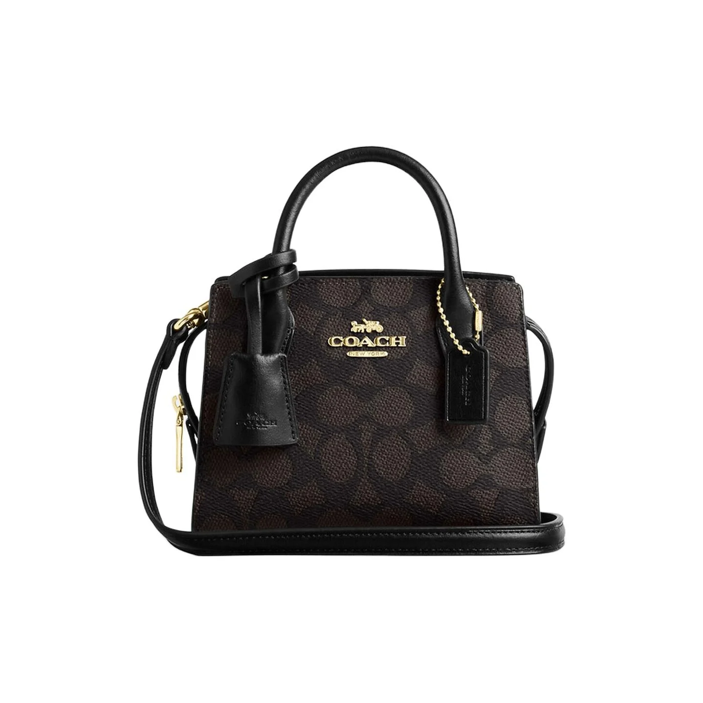 COACH Andrea Bolso de hombro de lona recubierta, bolso cruzado, bolso Mini de mujer nogal y negro CW304-IMXAQ