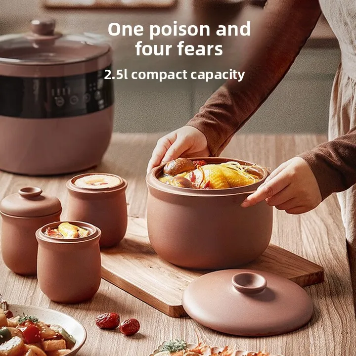 Olla para estofado eléctrica de 1,8l, hervidor de salud de cerámica dividido para cita de 9,5 h, olla para sopa de medicina china multifunción, mantiene el calor automático